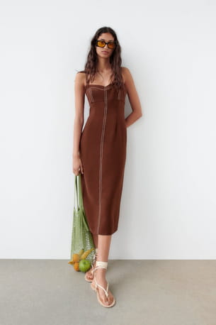 Robe marron à surpiqûres © Zara