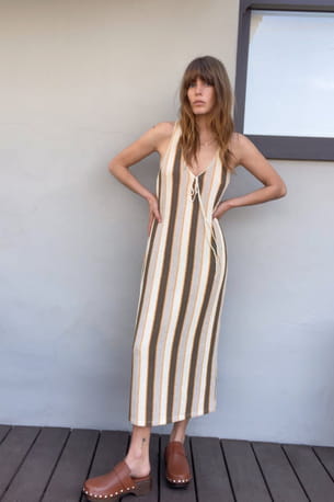 Robe mi-longue à rayures et nœud à l'avant de Zara