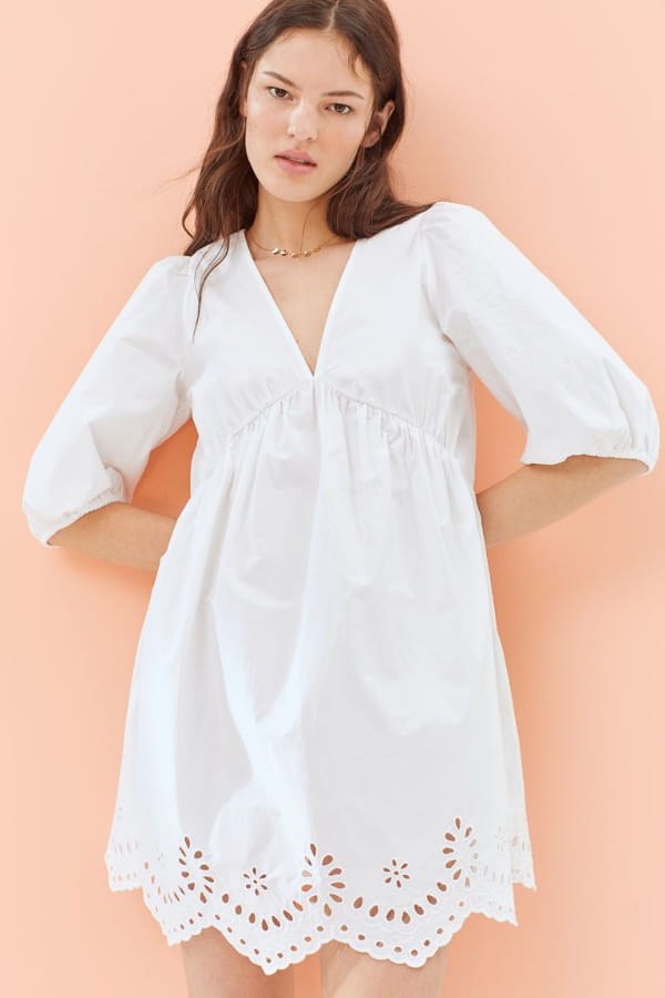 Robe blanche en coton et broderies anglaises à col en V de H&M