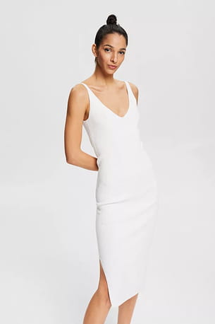 Robe blanche coupe midi en maille côtelée d'Esprit