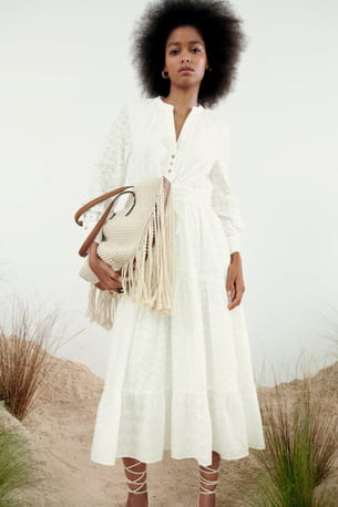 Robe blanche resserrée à la taille avec boutons en contraste de Zara