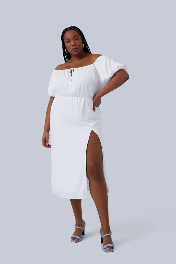 Robe blanche style romantique à col bateau et manches bouffantes de GIA/irl
