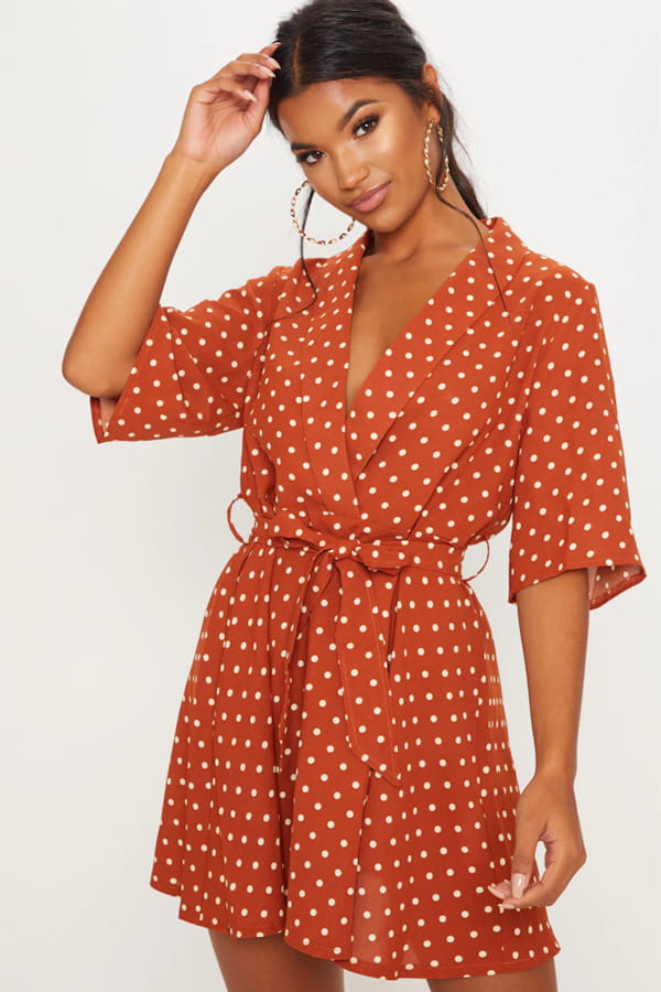 Robe terracotta à pois de PrettyLittleThing