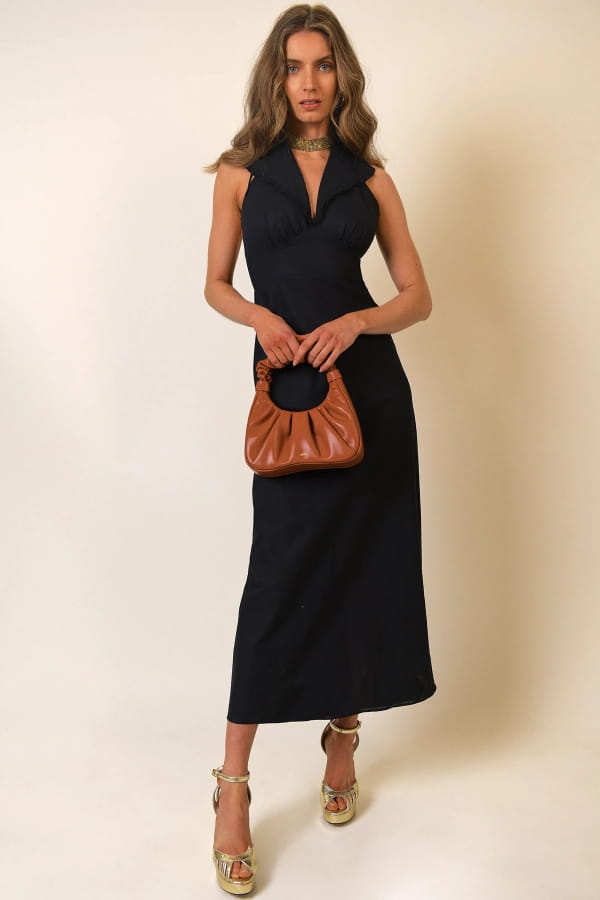 Robe noire longue nouée au cou "Sabrina" de Rixo