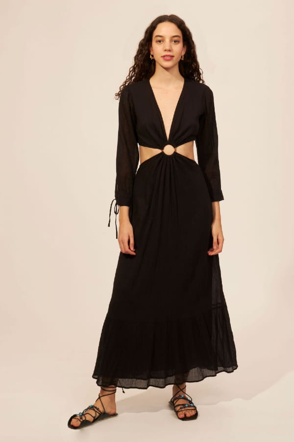 Robe noire longue bohème ajourée "Lia" d'Antik Batik