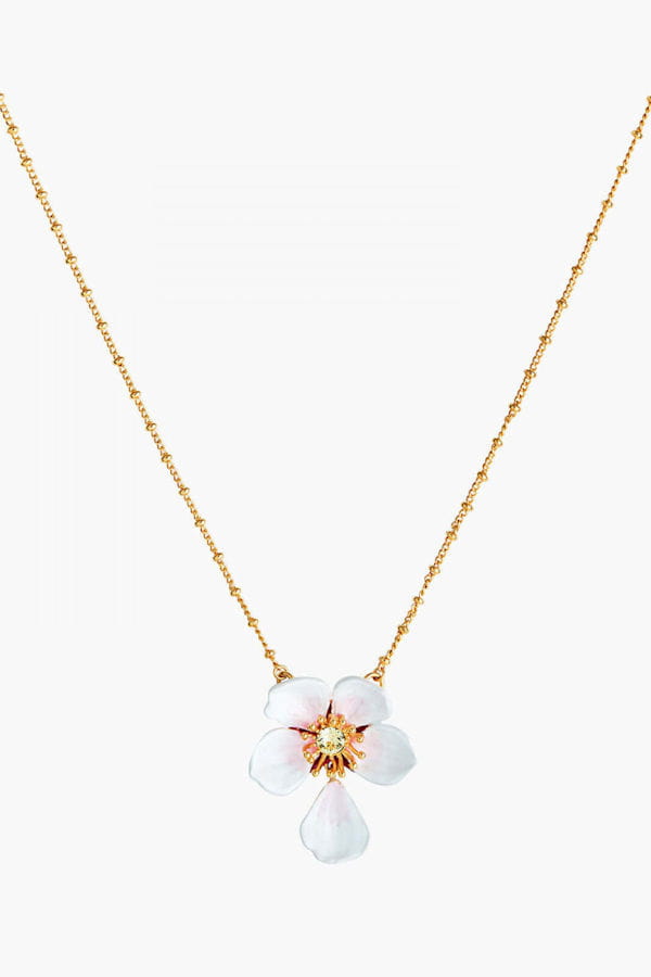 Collier fin doré avec pendentif en forme de fleur blanche du Japon de Les Néréïdes