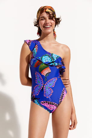 Maillot de bain une pièce asymétrique imprimé papillons de Desigual