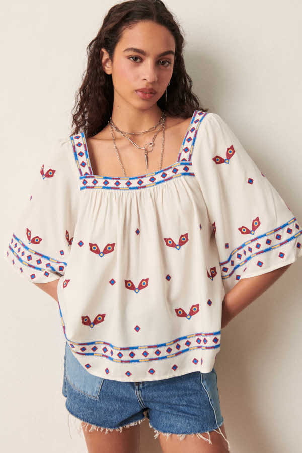Blouse brodée à encolure carrée "Jay" de Ba&sh