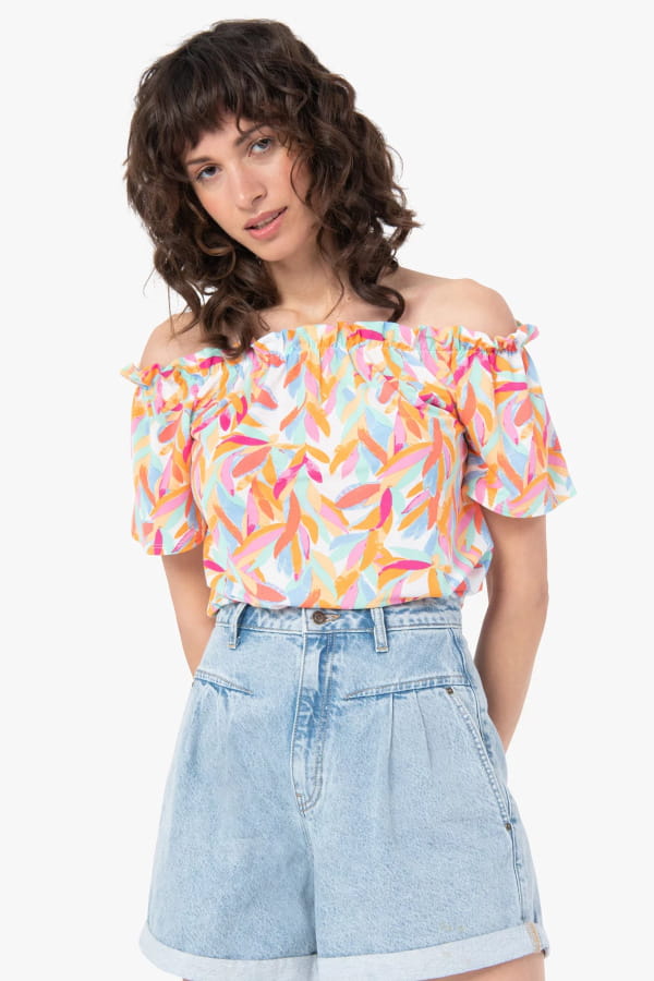 Top imprimé à col bateau froncé de Gémo