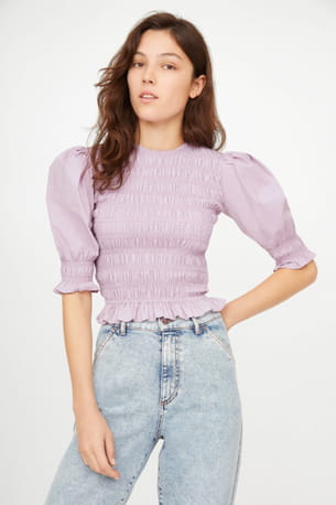 Top smocké lilas à manches bouffantes "Driver Emiliano" de Roseanna