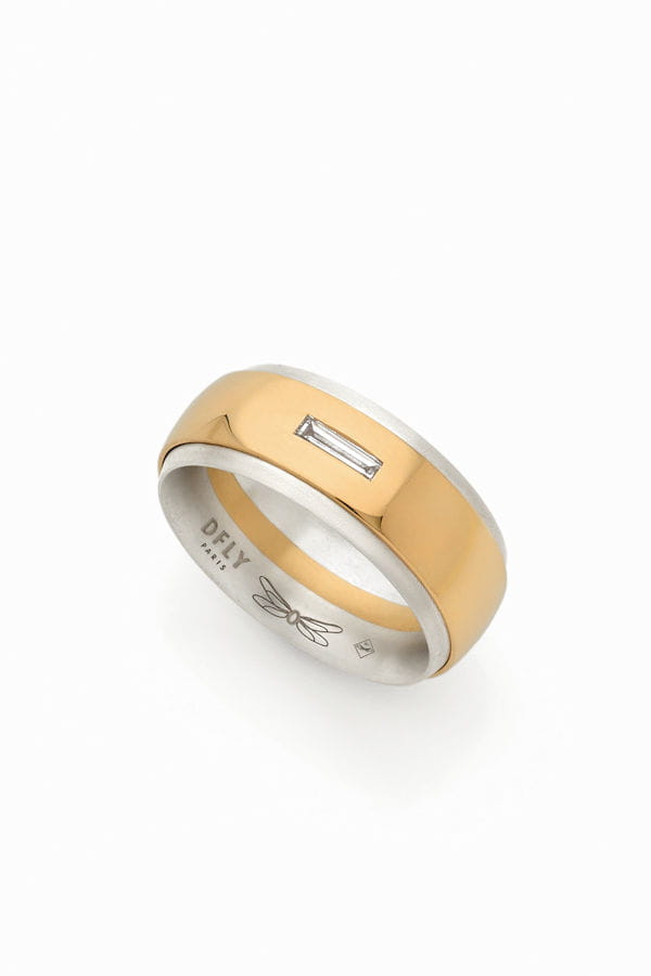 Anneau en argent, or jaune et diamant de synthèse "Neon" de DFLY Paris