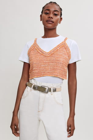 T-shirt trompe l'œil en jersey et en tweed de Maje