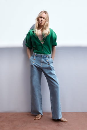 Jean à boutons et jambes larges de Zara