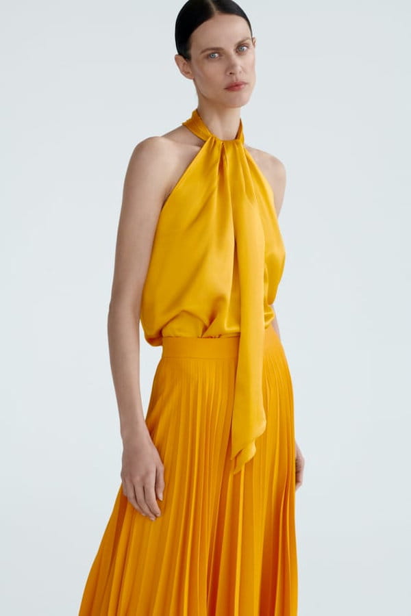 Top satiné à encolure américaine et nœud sur le devant de Zara