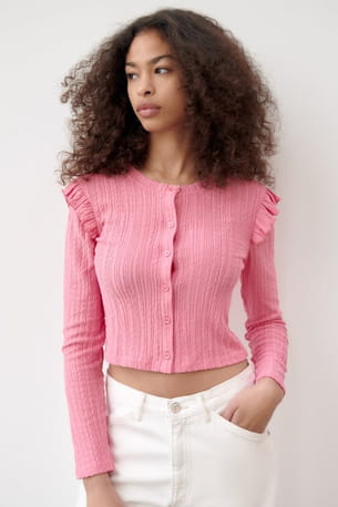 Gilet rose volanté à col rond de Zara