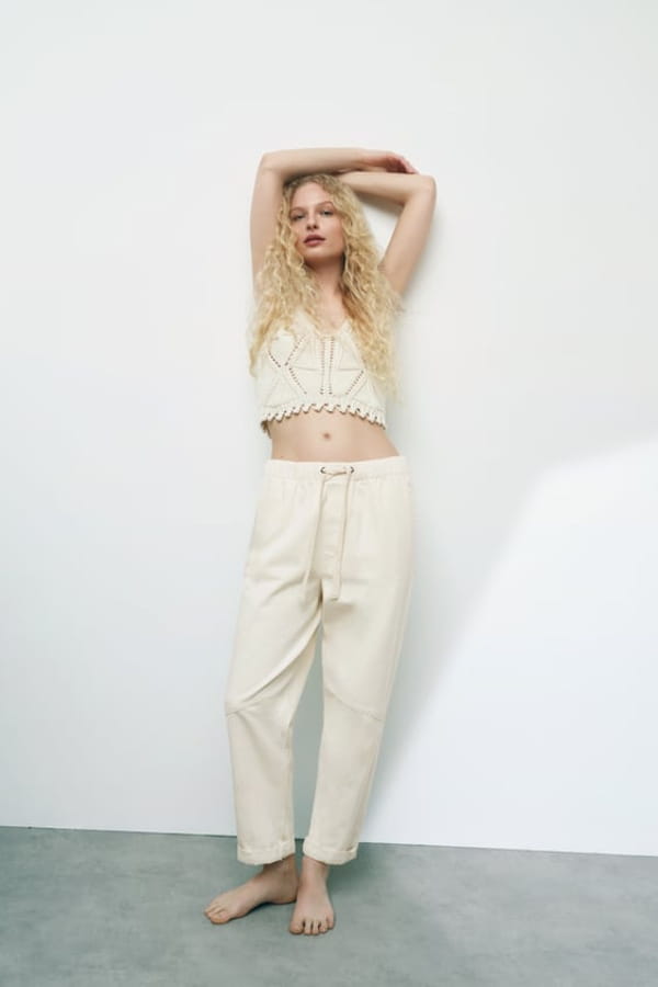 Pantalon carpenter écru en serge de coton lavé de Zara