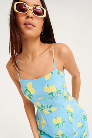 Robe en soie imprimée citron "Billie" de From Future