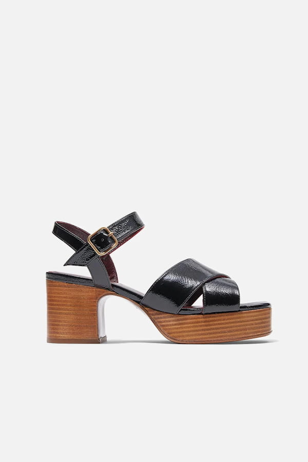 Sandales compensées en cuir verni © Avril Gau