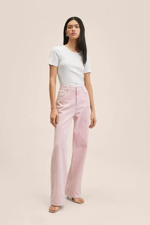 Jean rose droit à rayures de Mango