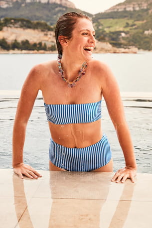 Maillot de bain deux pièces rayé bleu et blanc © Anja Paris