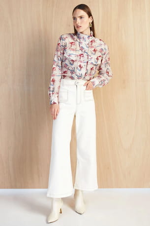 Jean blanc évasé cropped "Janis" de Magali Pascal