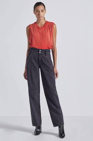 Jean droit noir à clous avec double boutonnage "The Studded Debbie Pant" de Current/Elliott