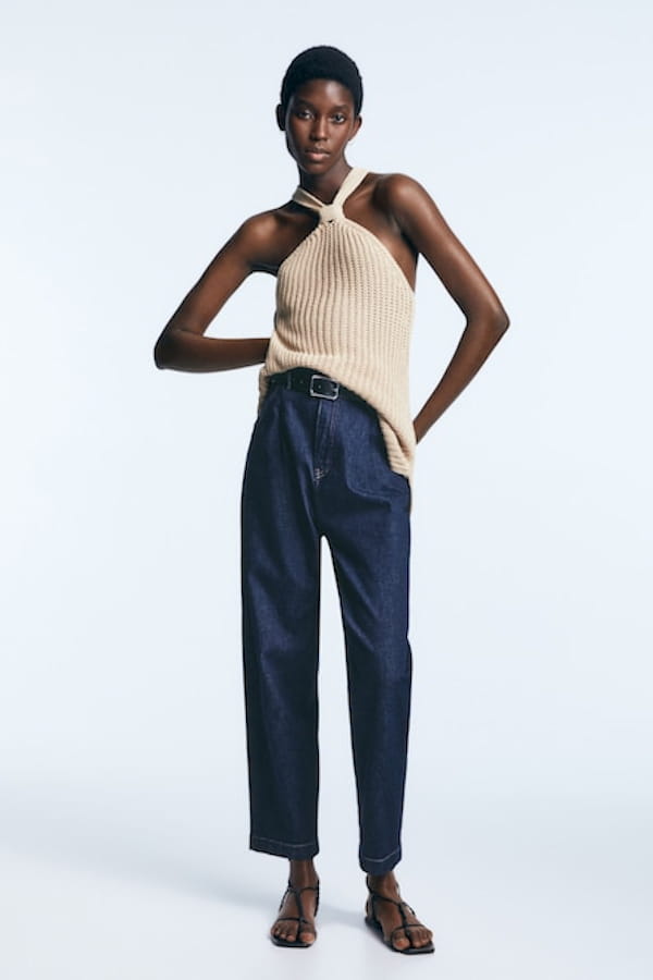 Jean paperbag avec pinces sur le devant de Massimo Dutti