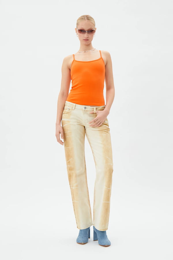 Jean taille basse délavé camel de Weekday