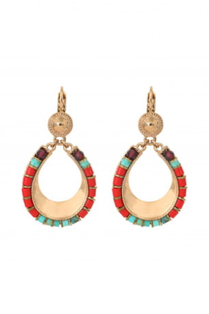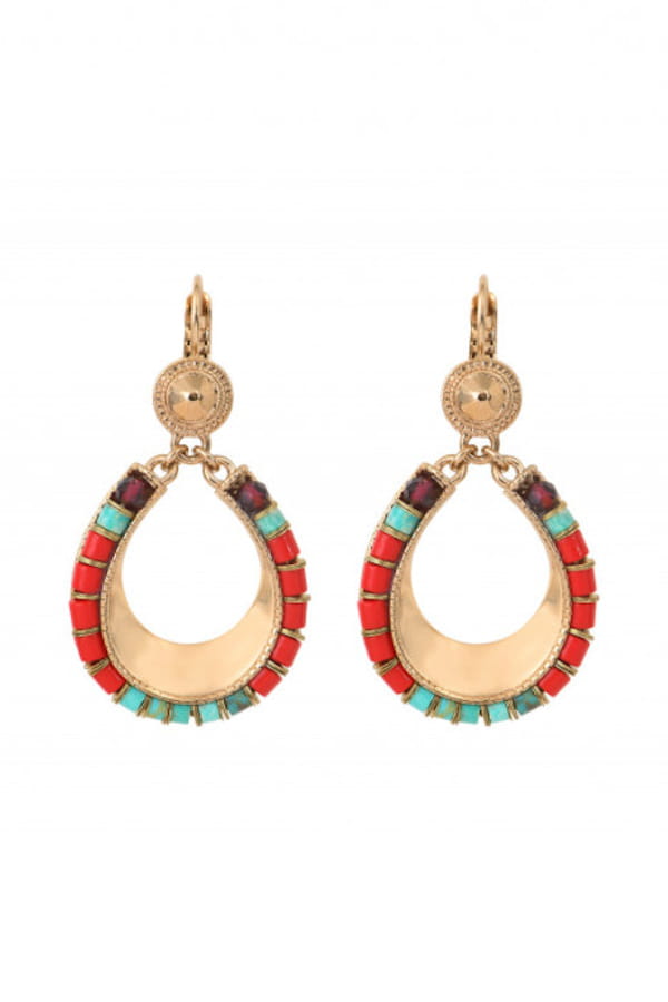 Boucles d'oreilles ornées de pierres de turquoises, grenats et perles du Japon de Satellite