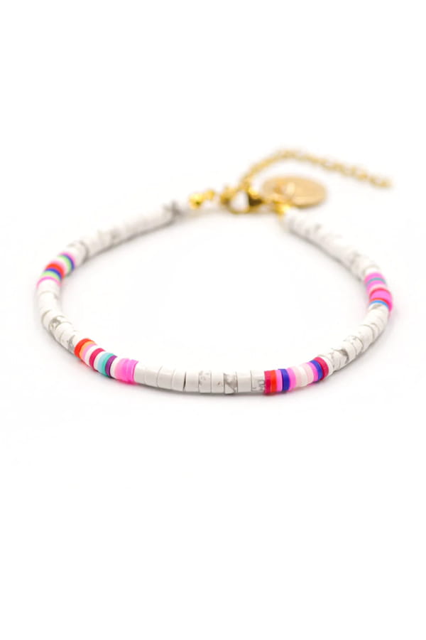 Bracelet de cheville orné de pierres de verre naturelles et de perles néoprène recyclées "Capri" de Simone à Bordeaux