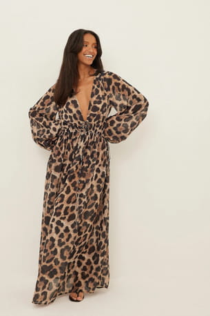 Robe léopard en mousseline nouée à la taille de Na-Kd