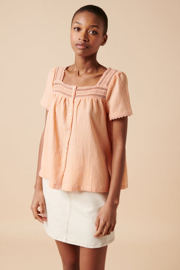 Chemise à encolure carrée et détails dentelle "Calanque" de Karl Marc John