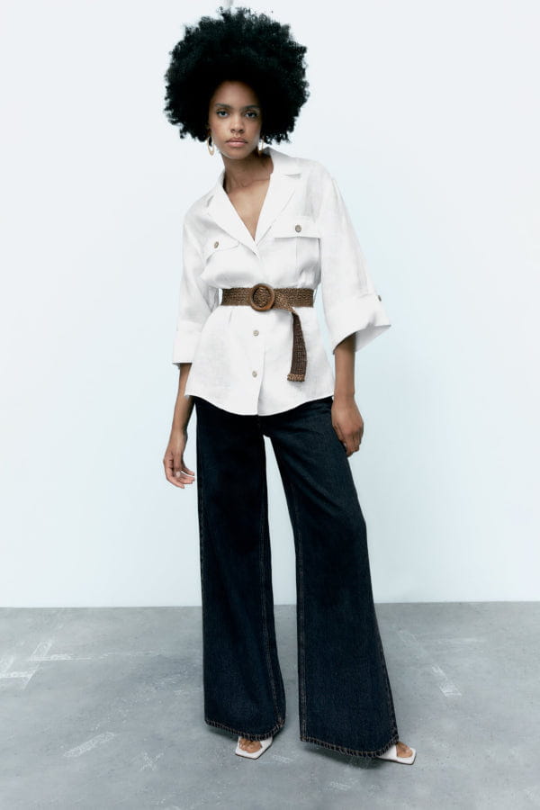 Chemise blanche en lin avec ceinture de Zara