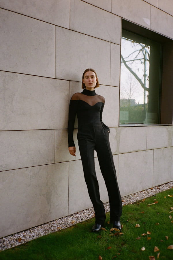 Body noir bimatière à col montant de Zara