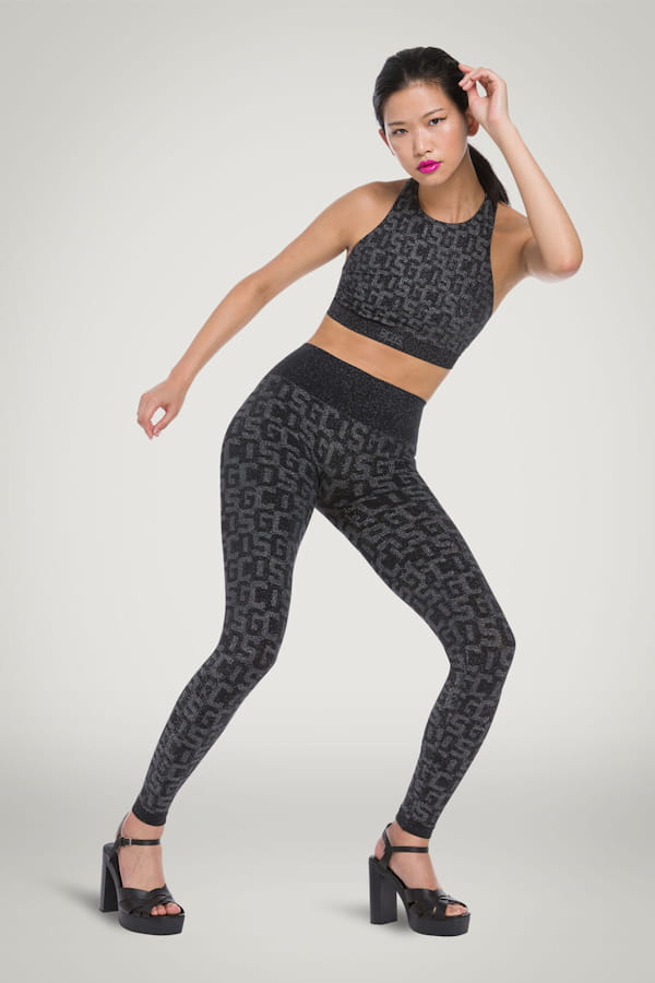 Legging monogramme brodé de lurex de Wolford x GCDS