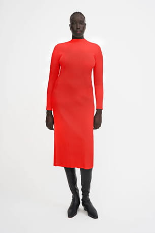 Robe tube côtelée corail à dos nu "Lara" d'Aeron