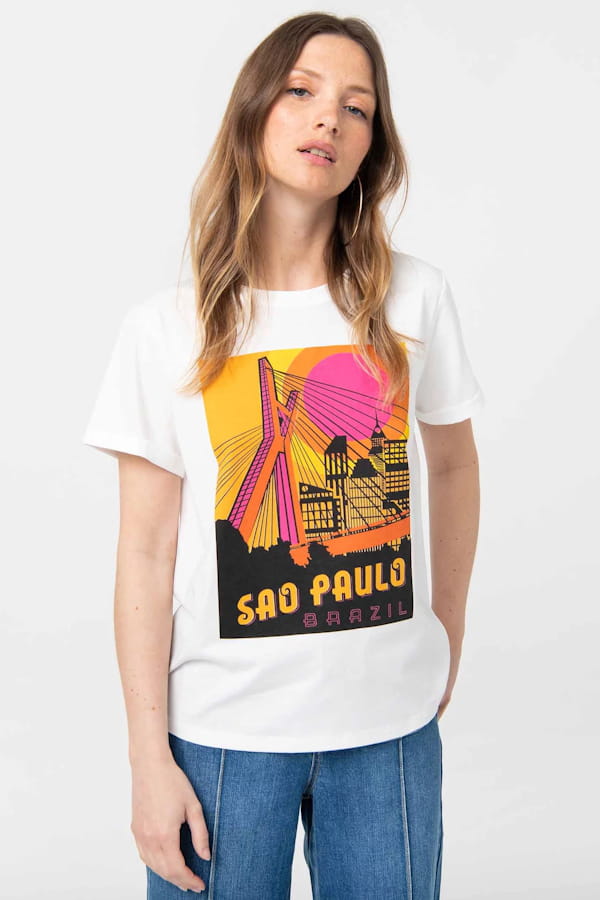 T-shirt blanc sérigraphié "Sao Paulo" de Gémo