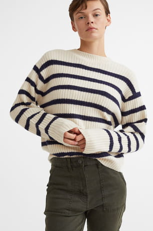 Pull noir et blanc à rayures et maille côtelée de H&M
