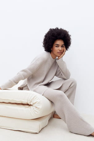 Pull gris clair chiné en maille côtelée et col montant de H&M