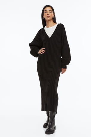 Robe noire midi en maille côtelée de H&M