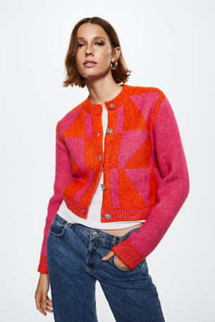 Cardigan rouge et rose en maille à boutons bijoux de Mango