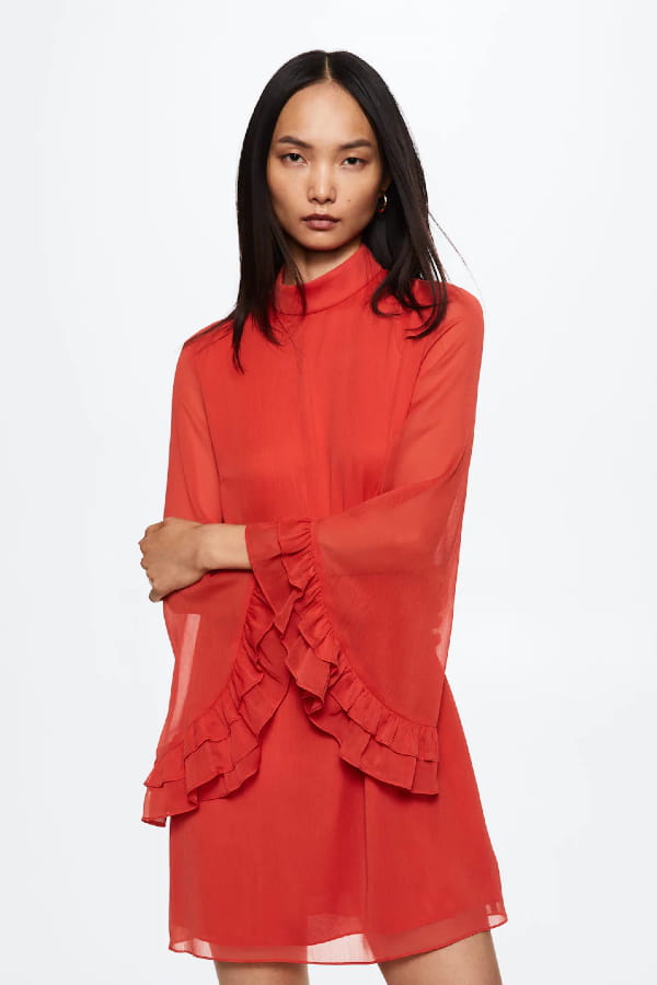 Robe rouge à manches volantées de Mango