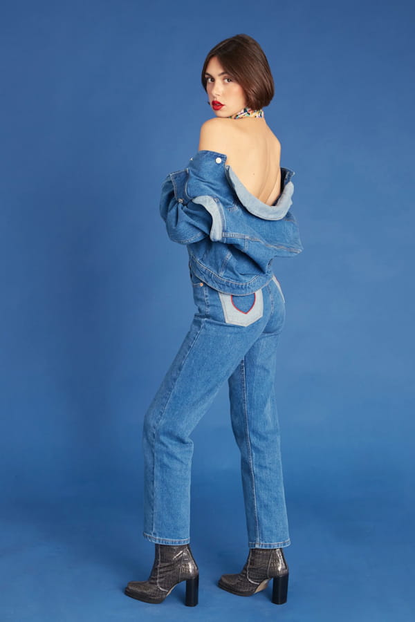 Jean bleu ciel à poches contrastées "Bb" de Maison Nicole
