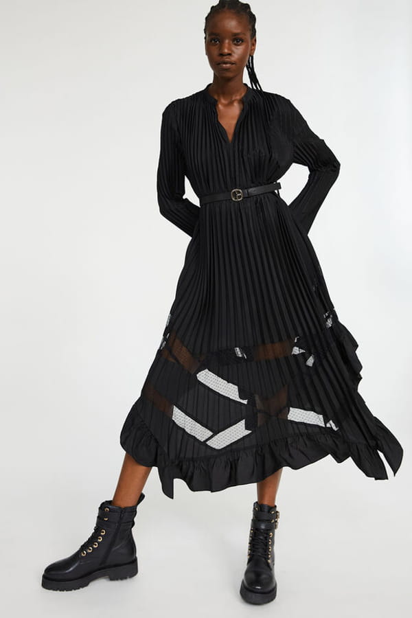 Robe noire plissée à empiècements à dentelle de Claudie Pierlot