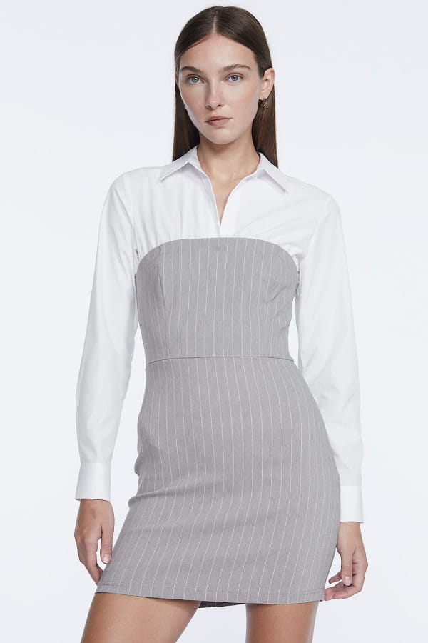 Robe blanc et gris bi-matière à rayures de Stradivarius