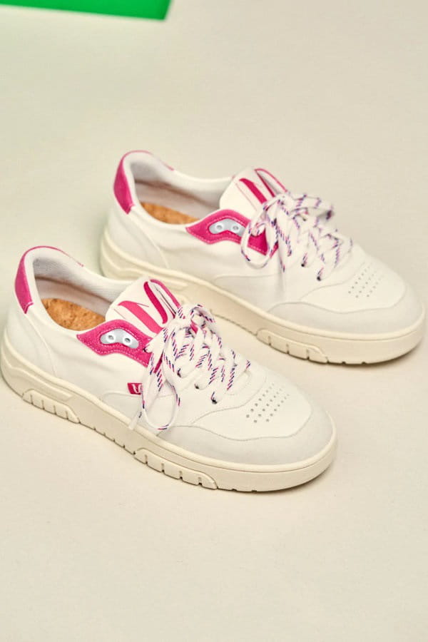 Baskets vegan façon cuir et suède blanc et fuchsia © M.Moustache