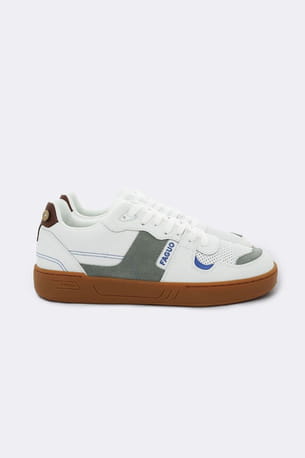 Baskets en cuir bleu gris et marron