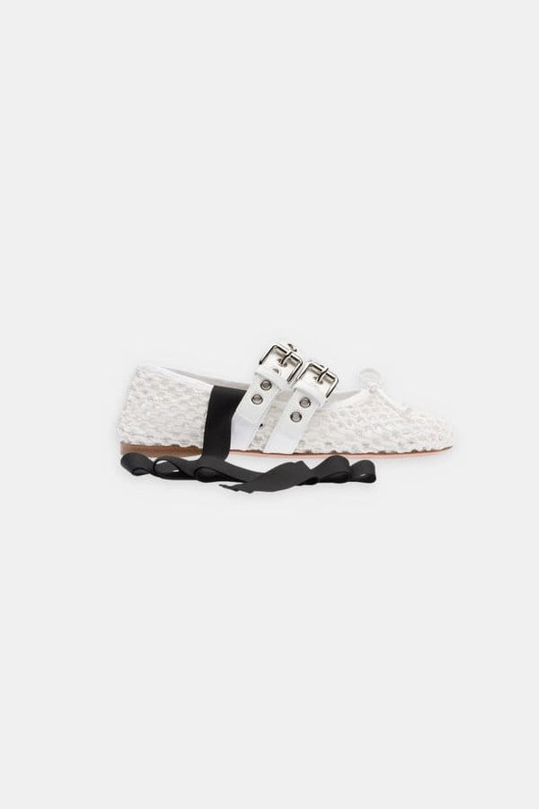 Ballerines en tissu macramé blanc de Miu Miu aux Galeries Lafayette