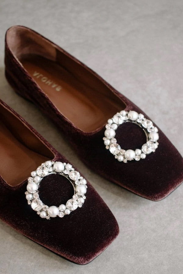 Ballerines en velours marron "Bella Crystal" d'Alohas