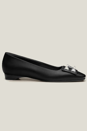 Ballerines noires en cuir veau à détails "Danseuse" de Hermès